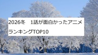 アニメ感想 2026冬 1話が面白かったアニメランキングTOP10 冬アニメが始まりましたね。皆さんは何が面白かったですか?冬アニメの印象は異世界アニメがいつもより多い印象です。今回は個人的に面白かったアニメをランキングしていきたいと思います。それでは10位から!10位 透明男と人間女~そのうち夫婦になるふ... 2026.01.17 アニメ感想